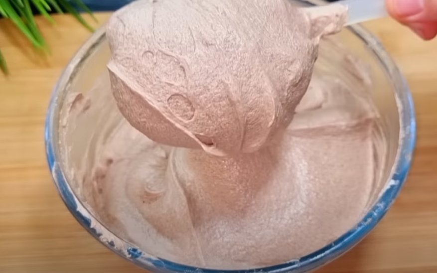 5. Отдельно в тарелке миксером взбейте сливочное масло в течение 4-5 минут. Постепенно введите весь заварной крем, продолжая взбивать. В конце добавьте какао и ещё раз взбейте крем до однородности.