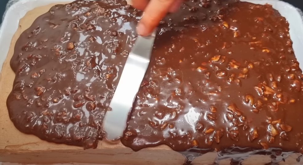 8. Равномерно нанесите глазурь по поверхности всего торта. Уберите торт в холодильник на 2 часа, чтобы он настоялся.